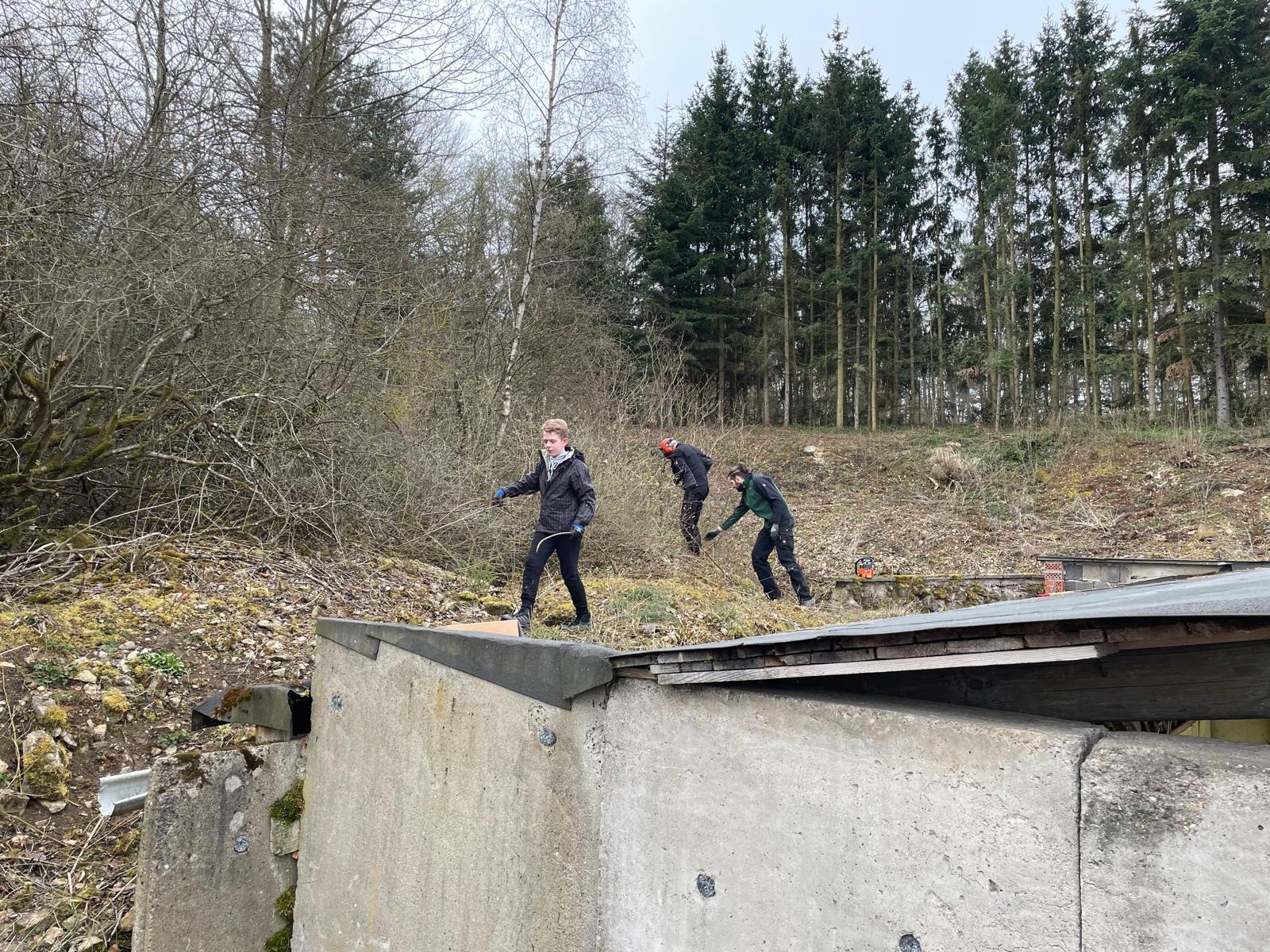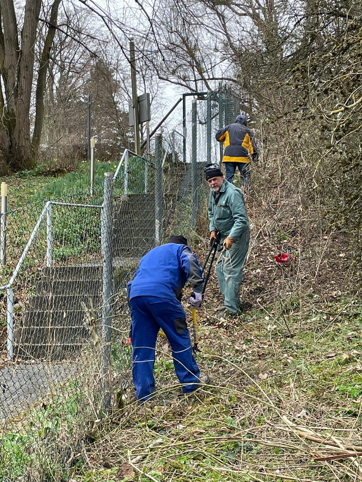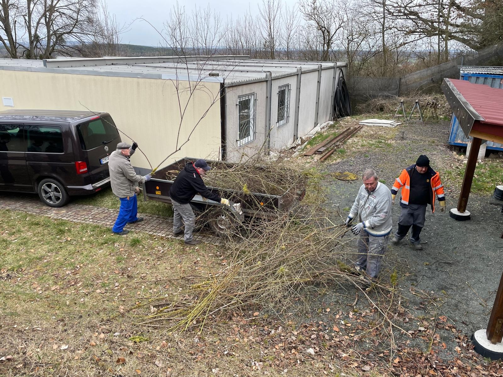 und so war das Osterfeuer zügig aufgeschichtet….loses Gestrüpp aufgesammelt, der Einfahrtsbereich nebst Zaun frei geschnitten und auch hinter dem Pistolenstand der Hang freigelegt.